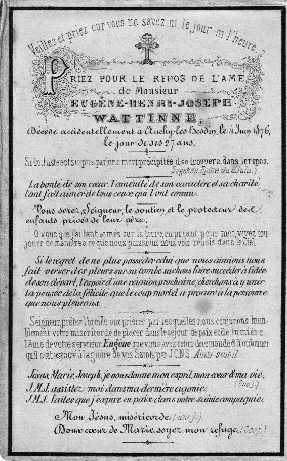 Eugène Henri Joseph WATTINNE — Né le 04/06/1849 à Roubaix — Décédé le 04/06/1876