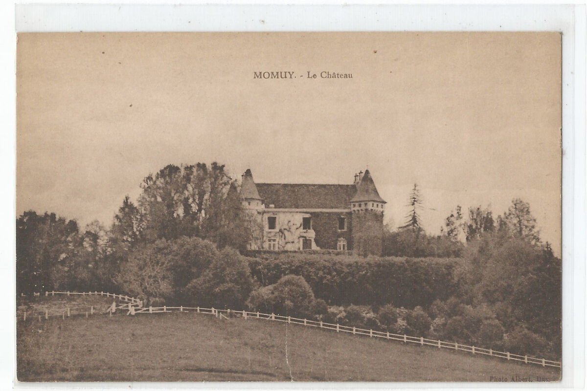 Momuy est un petit village de Chalosse dans les Landes, situé sur une colline à 100 mètres d'altitude dominant la vallée du Luy de France, sur la route entre Hagetmau et Orthez. Le bourg, érigé en bastide par une charte du 30 septembre 1341 signée par Édouard III roi d'Angleterre en faveur du baron de Momuy, est l'un des bourgs les plus anciens de la région. La seigneurie appartient à la famille d'Arzac jusqu'en 1660, puis passe par alliance à la famille de Saint-Julien qui la conserve jusqu'à la Révolution. Le château, construit au XVIe siècle sur un éperon rocheux dominant la vallée, a conservé son allure féodale : donjon, tourelles d'angle et fenêtres à meneaux.